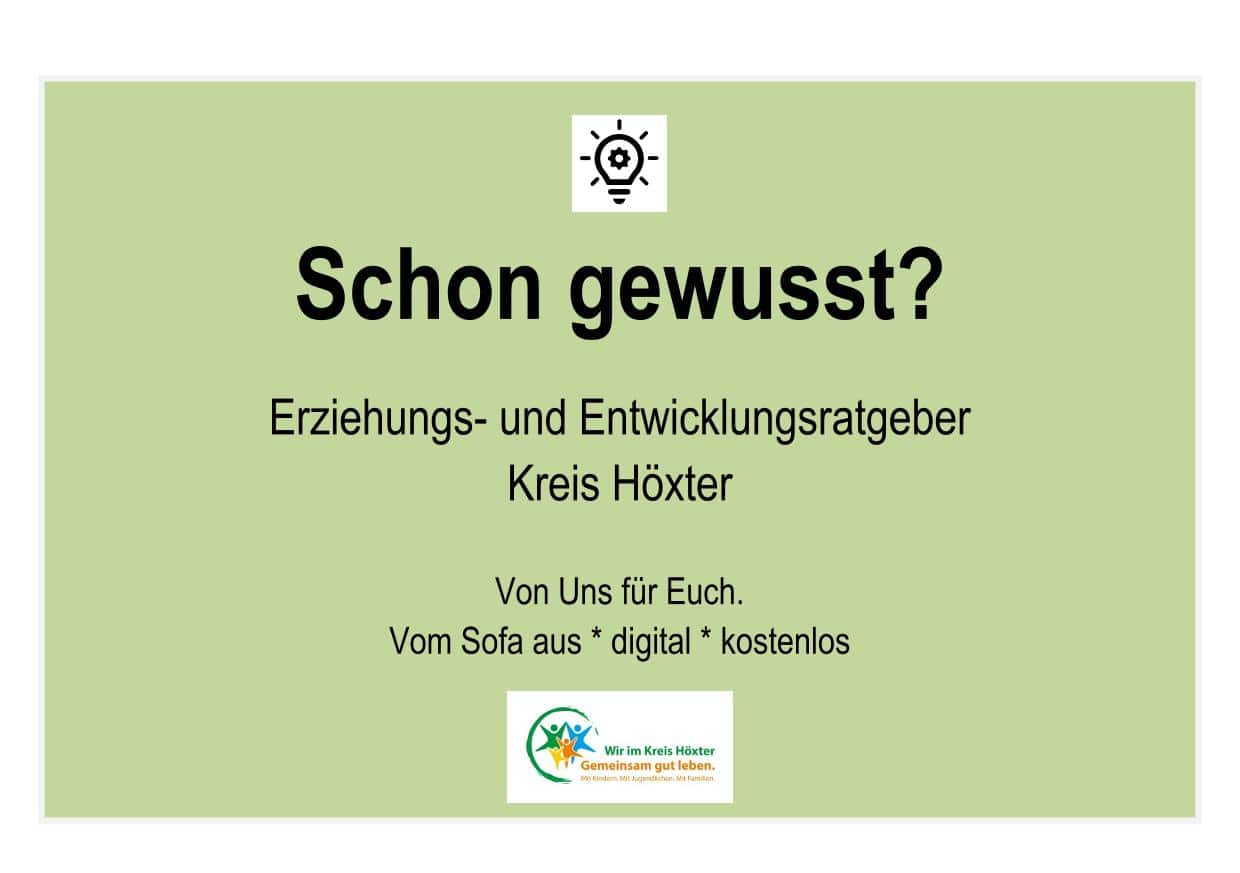 Der Alltag mit Kindern und Jugendlichen hält für Familien oft einige Herausforderungen bereit. Um Eltern in Ihrem Familienalltag zu unterstützen, hat der Kreis Höxter mit „Schon gewusst?“ einen digitalen Erziehung- und Entwicklungsratgeber entwickelt und 2024 zum ersten Mal angeboten.